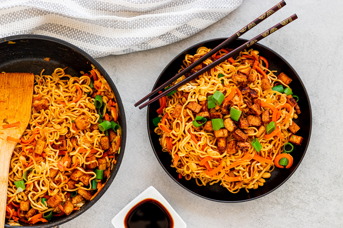 Vegane gebratene Nudeln wie vom Asiaimbiss um die Ecke? Kein Problem. Schnell gemacht und perfekt für Faule!