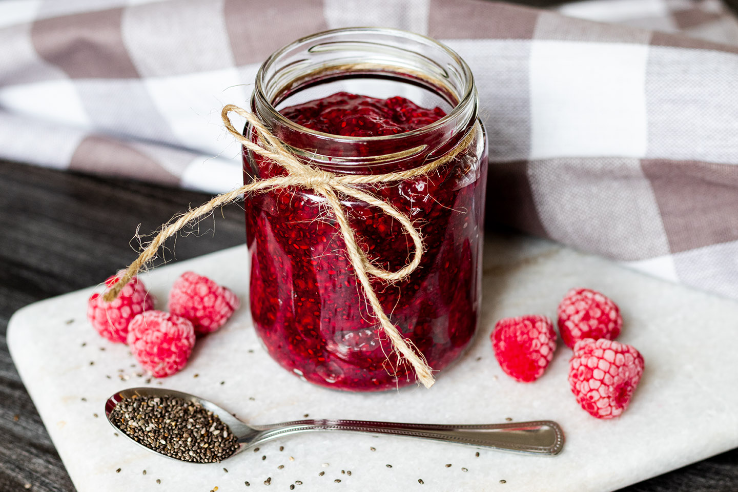 Seit dem gibt es diese selbst gemachte Marmelade nur noch bei uns zu Hause. Durch die Chiasamen ist sie außerdem sehr reich an den gesunden Omega-3-Fettsäuren, die unser Gehirn ganz unbedingt braucht. Außerdem geben sie der Marmelade noch eine schöne, körnige Konsistenz.