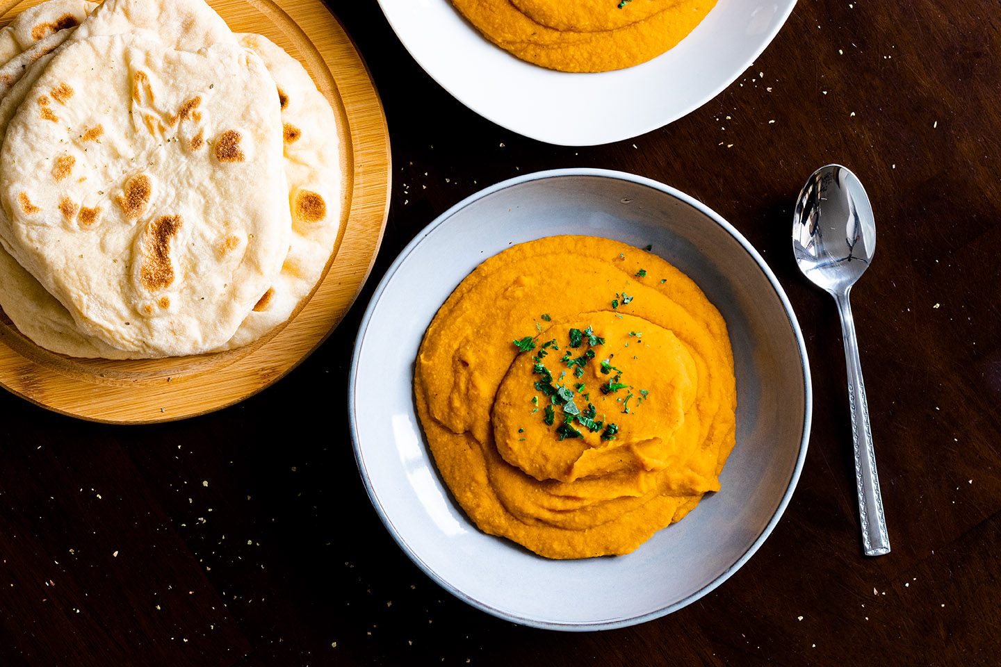 Voll gepackt mit guten Nährstoffen ist dieses Linsen-Möhren-Curry das perfekte Mittag- oder Abendessen. Die Linsen geben dem Gericht einen hohen Proteingehalt. Ich hab mir dazu ein leckeres, veganes Naan gemacht. Wenn ihr dazu auch mal ein Rezept haben wollt, lasst es mich wissen, dann bereite ich gerne eins vor.