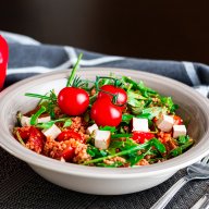 Er ist wirklich einfach gemacht und man braucht nicht viele Zutaten. Außerdem schmeckt er herrlich in einer kleinen Grillsituation mit ein paar Freunden oder der Familie an einem lauen Sommerabend. Was ich an Couscous außerdem liebe ist, dass er so vielseitig ist. Man kann ihn wunderbar süß, oder wie in diesem Fall, herzhaft essen und er schmeckt immer gut. Dabei ist er so unkompliziert in der Zubereitung, da er einfach nur mit heißem Wasser aufgegossen wird und er dann ganz von alleine quillt, ohne dass ihr ihn kochen müsst. Super easy, super lecker.