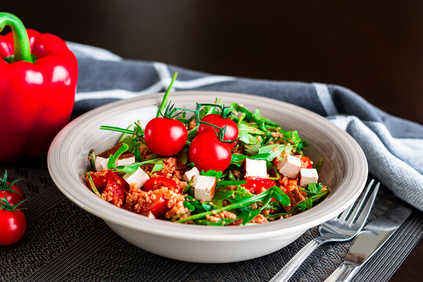 Dieser mediterrane Couscous-Salat war ursprünglich mein liebster Couscous-Salat bevor ich vegan wurde. Damals habe ich ihn mit Feta zubereitet, heute habe ich den Feta durch Räuchertofu ersetzt und er schmeckt mir mittlerweile in veganer Form sogar noch besser!