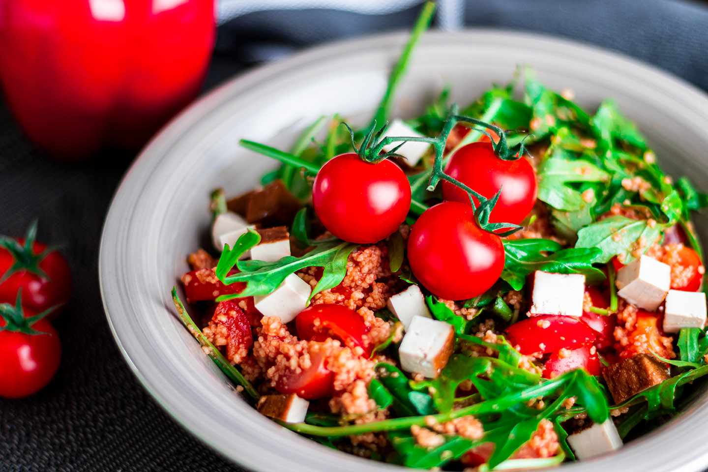 Wer zum Beispiel sowieso kein großer Fan von Zwiebeln ist, kommt bei diesem Salat voll auf seine Kosten. Der Rucola sorgt hier nämlich für eine angenehme Würze und Schärfe, daher braucht der Salat gar keine Zwiebeln mehr. Durch Tofu sorgt in diesem Salat für einen guten Eiweißgehalt und der Rucola versorgt uns mit Folsäure, Vitamin C, Betakarotin usw. Eine richtig gesunde Bombe, quasi!