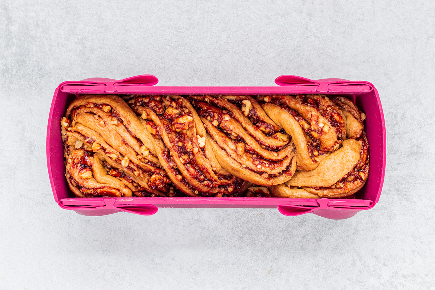 Wisst ihr, was außerdem das Gute an so einem Hefezopf ist? Die Füllung ist absolut variabel. Ihr könntet z.B. auch eine Schokoladen-Haselnuss-Füllung, in dem ihr Kakao, Haselnussmus und Dattelsirup vermengt. Oder wie wäre es mit einer fruchtigen Variante aus Heidel- oder Himbeermarmelade? Da sind eurer Fantasie bzw. eurem Gaumen nun wirklich keine Grenzen gesetzt.