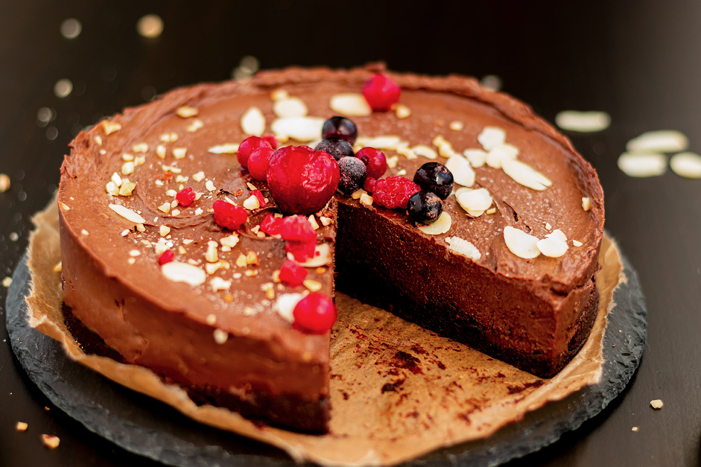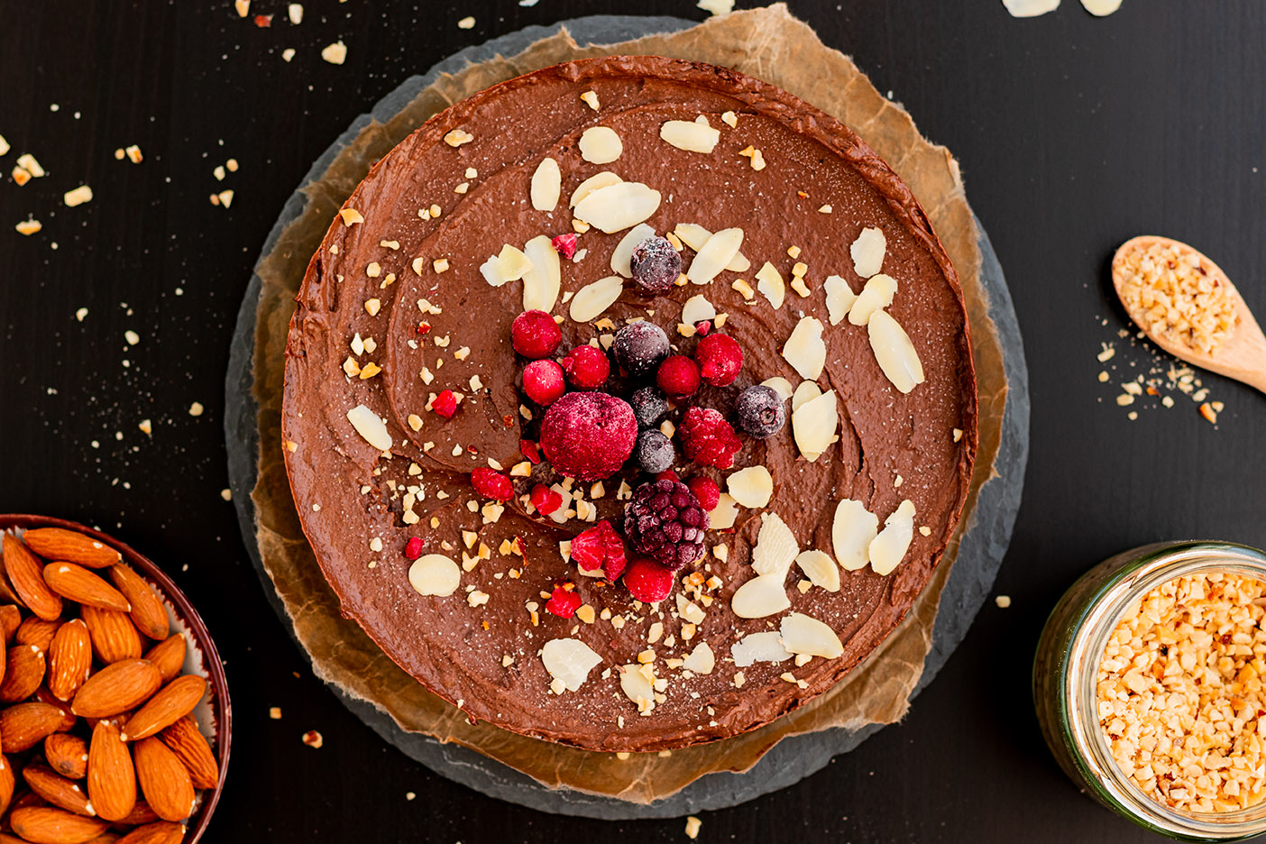 This chocolate cake is not baked, but you simply mix 2 different masses, which together create a taste orgasm. Sorry for the vulgar description, but real chocolate fans like me will understand what I mean. In fact you don't need any fancy ingredients either. The base is a date and nut mixture and the filling mainly consists of (yeah okay, you can argue about fancy now) avocado, banana and cocoa. If you don't like banana in chocolate cake, you can do without it and use only avocado instead. I know, avocado in cake sounds unusual at first. But trust me, in the end you won't taste the avocado out at all, but simply have a very creamy and delicious filling - I promise!
