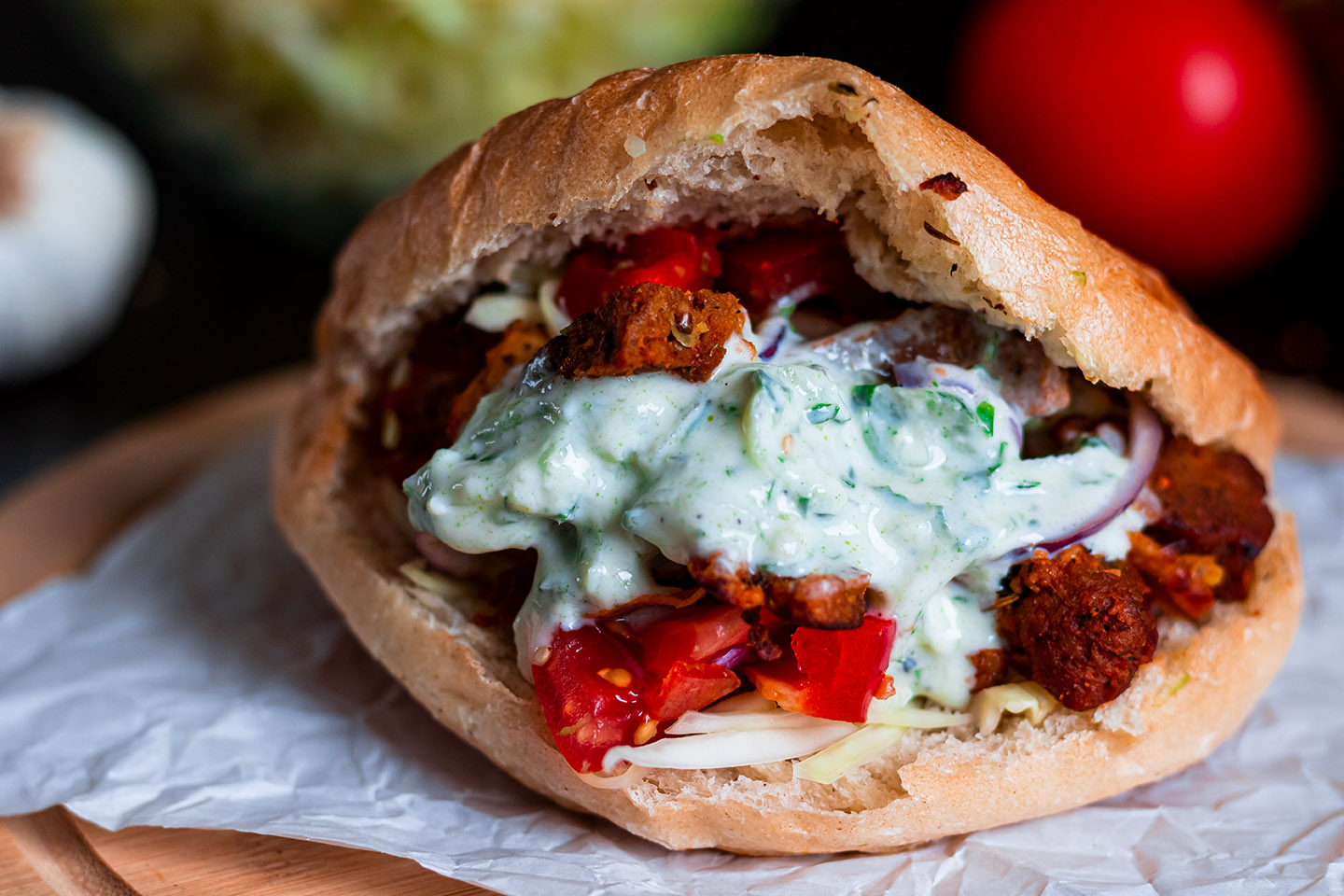 You can use Tsatsiki for this recipe if you like, but other sauces of your choice are also possible. There are no limits to your imagination! Please have a look at my Tsatsiki recipe. It is really fast prepared and is in no way inferior to the original. Vegan for the win! :D