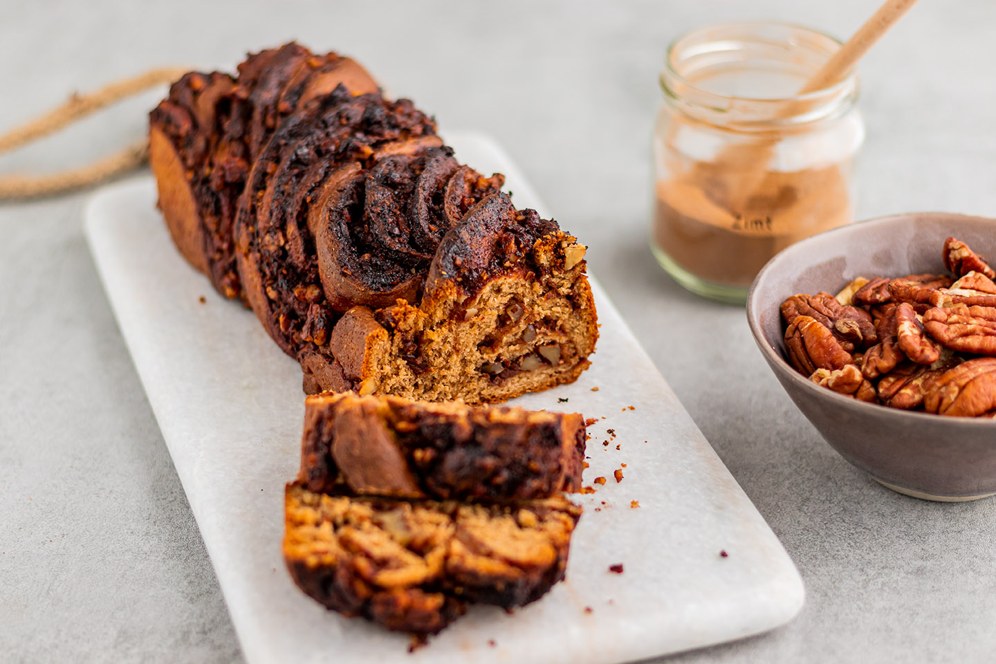 In diesem Rezept verwende ich überwiegend gesunde Zutaten. Statt nährstofflosem weißen Mehl verwende ich (Dinkel-)Vollkornmehl. Statt stark verarbeitetem weißen Zucker verwende ich zum einen Kokosblütenzucker im Teig und Dattelsirup in der Füllung. Lediglich für die Füllung habe ich etwas "ungesunde" vegane Butter verwendet. Aber Fett ist nun mal ein Geschmacksträger und schmeckt hier in Kombination mit dem Dattelsirup, Zimt und den Pekannüssen einfach unheimlich lecker. Alternativ könntet ihr jedoch auch z.B. Kokosöl statt veganer Butter verwenden (dies verändert jedoch etwas den Geschmack).