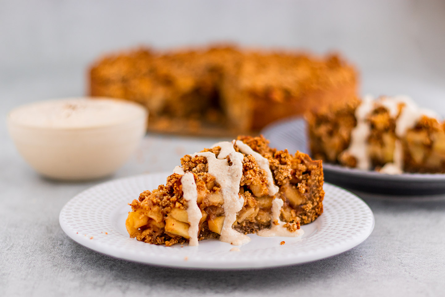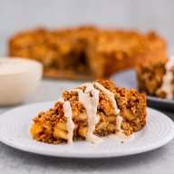 It is time again! The apple season has started. And how do you ring in the right way? Correct! With a delicious vegan apple crumble cake with vanilla sauce. And as you surely know, I try to keep the recipes on my blog as healthy as possible. That means I mainly use wholemeal flour and no white sugar. Therefore this cake is not low in calories, but still not too much of a sin!